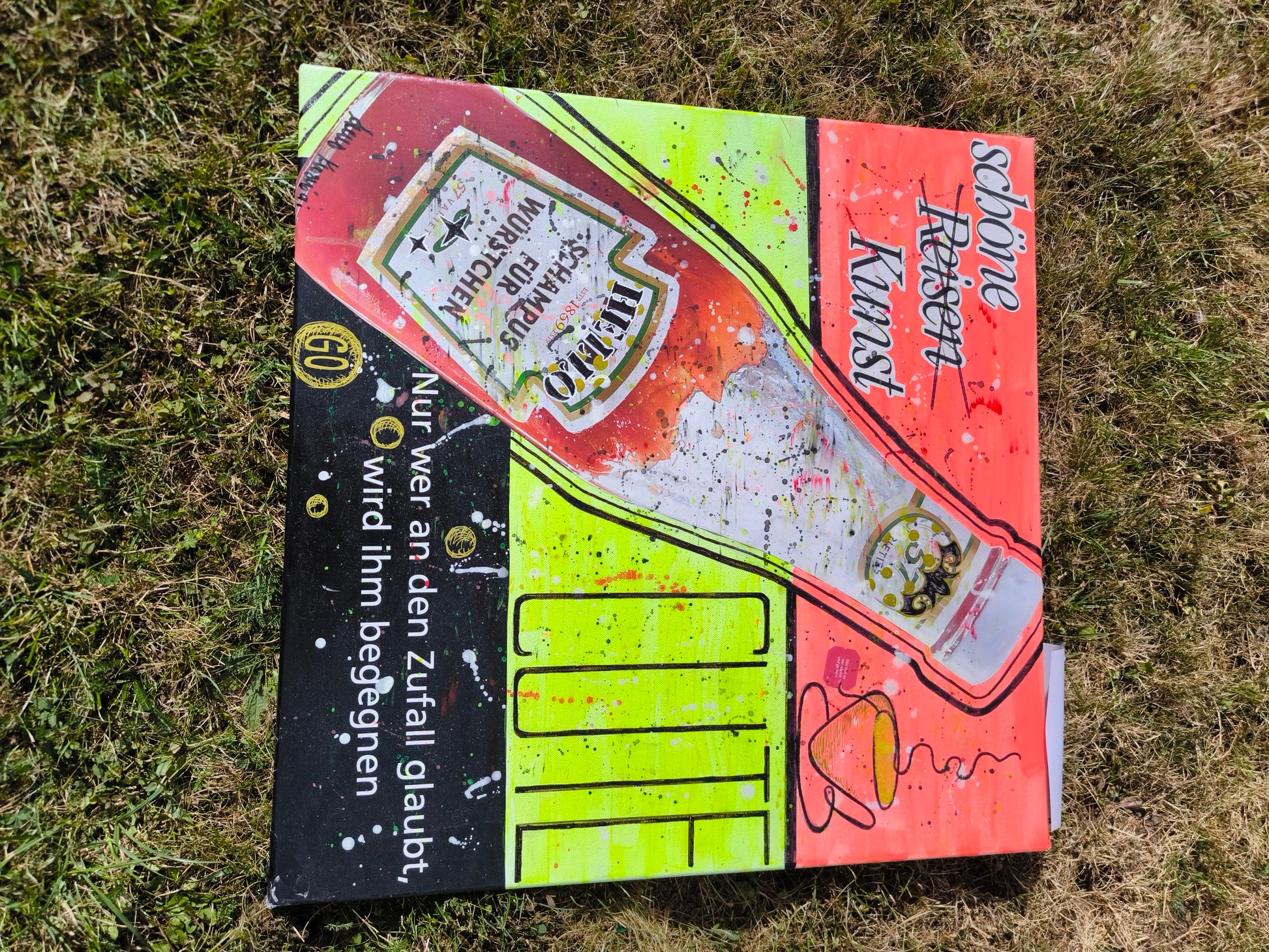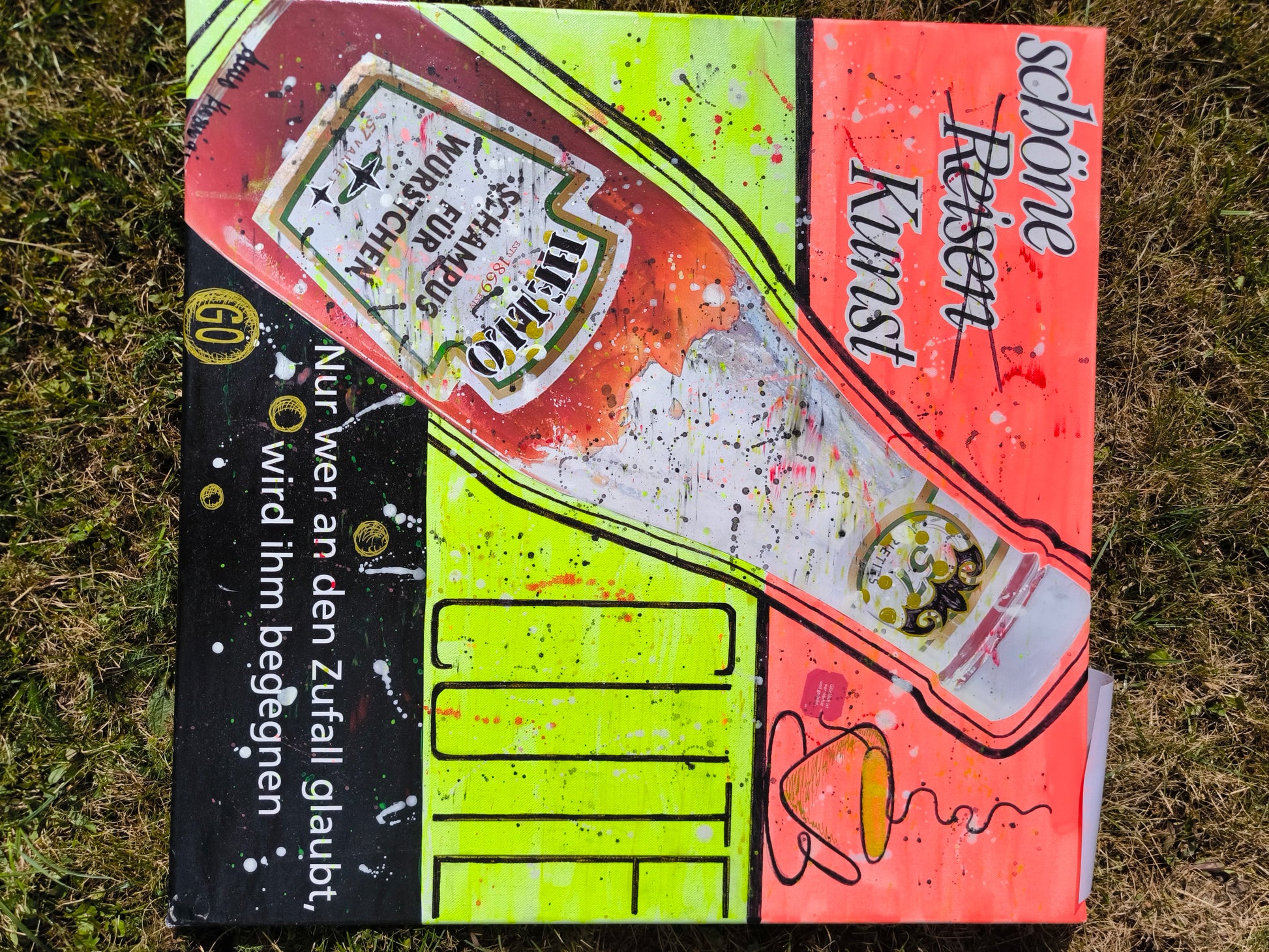 Akryl auf. Leinwand im Pop Art Stil mit Collagen Elementen. Ach wie cool kann Kunst sein. Der absolute Hingucker in jeder Küche oder Esszimmer, einfach mal locker machen und genießen, das Essen, das Leben und sich selbst.