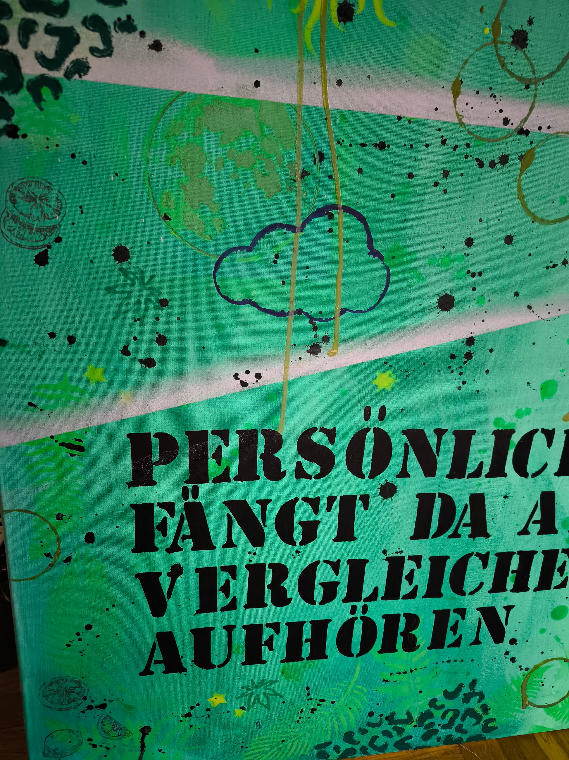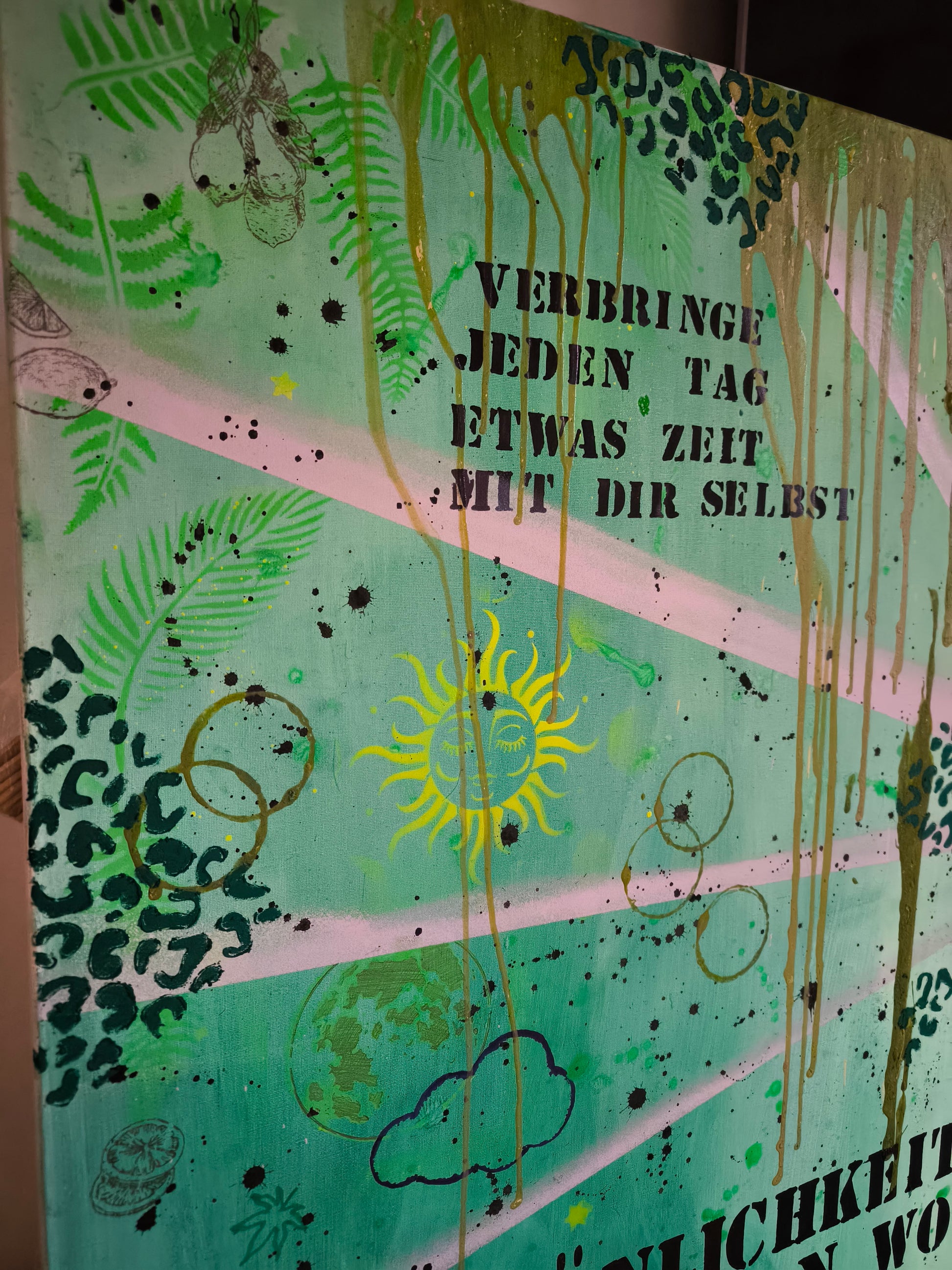 Es steht für Hoffnung, Zuversicht, Natur, Ruhe und Gelassenheit. Auch für Neuanfang, es ist entstanden, in einer Zeit, wo sich viel verändert.